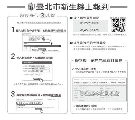 線上報到(報到期間:113/5/25上午9時~113/6/3下午5時止) *操作步驟可參閱通知單背面圖示