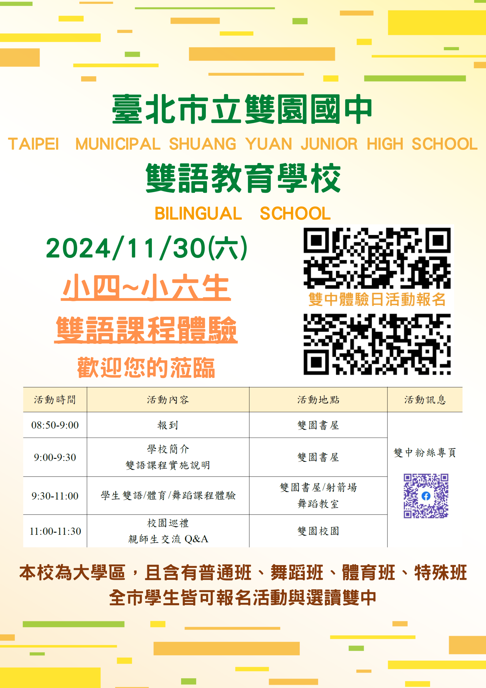 三、活動地點:雙園國中(臺北市萬華區興義街2號)。